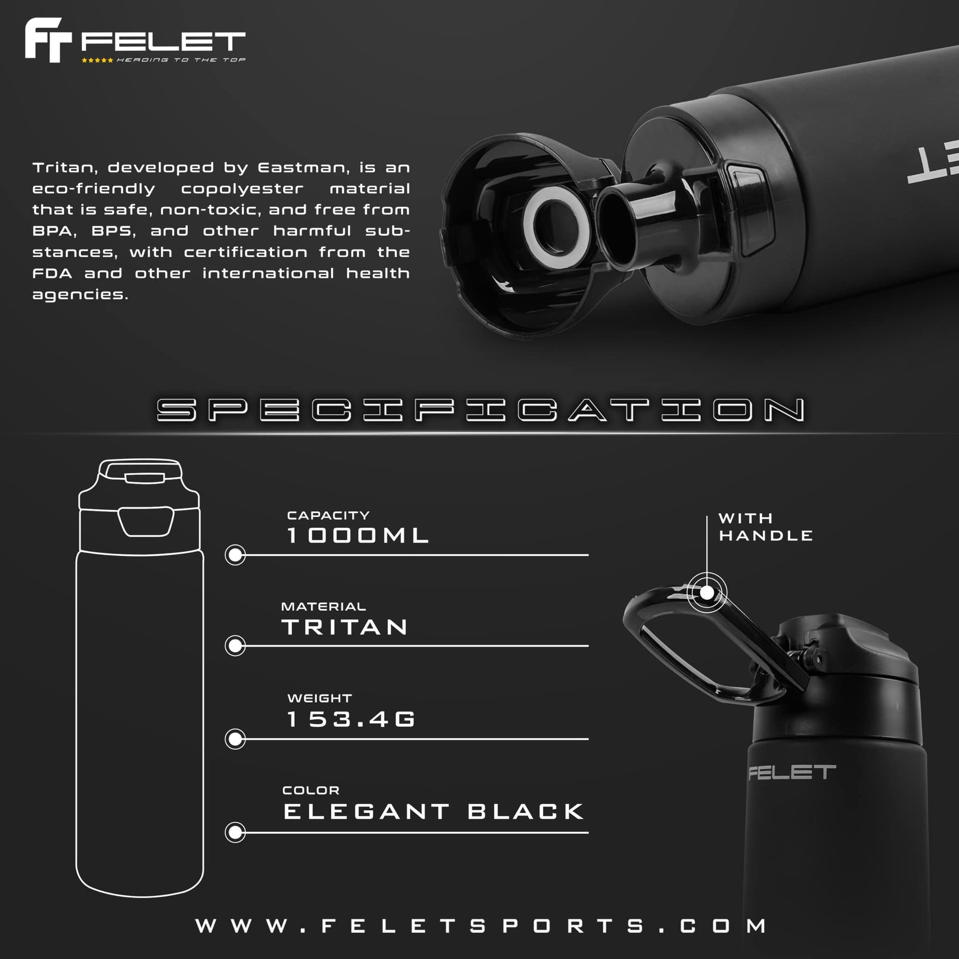FELET Tritan Sports Water Bottle